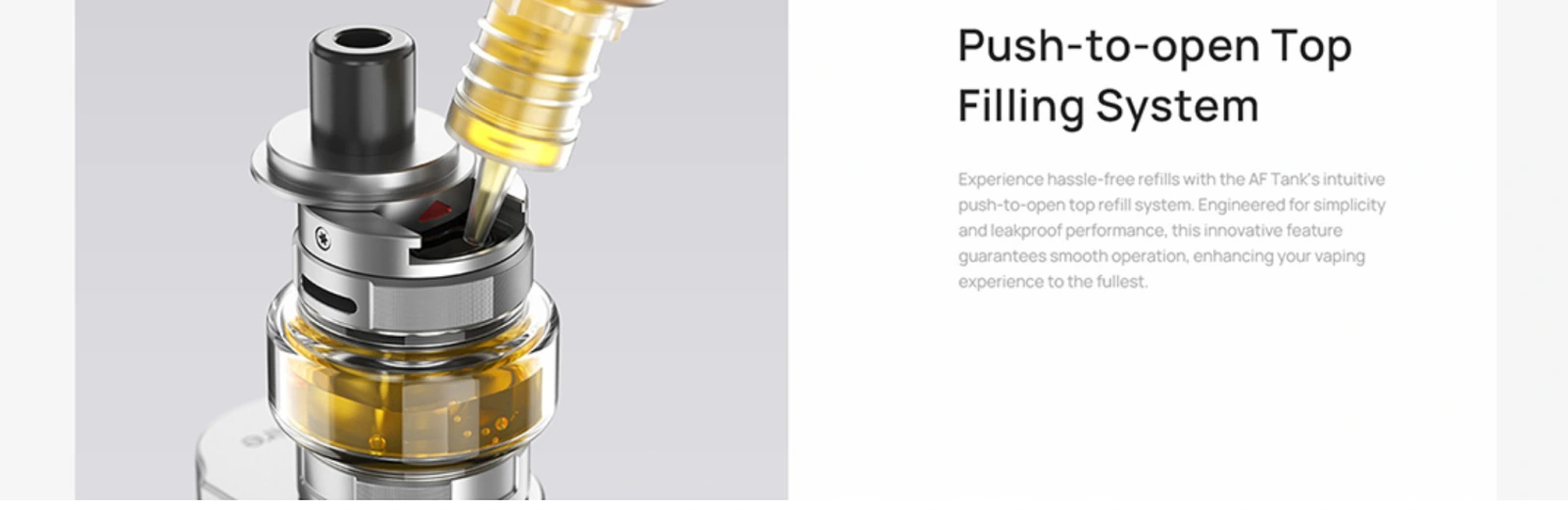 The easy top-fill system allows for quick and clean refilling, while the adjustable airflow gives you full control over your vaping experience. Whether you prefer a more restricted draw or a more open inhale, the Aspire AF Tank can be adjusted to suit your style.