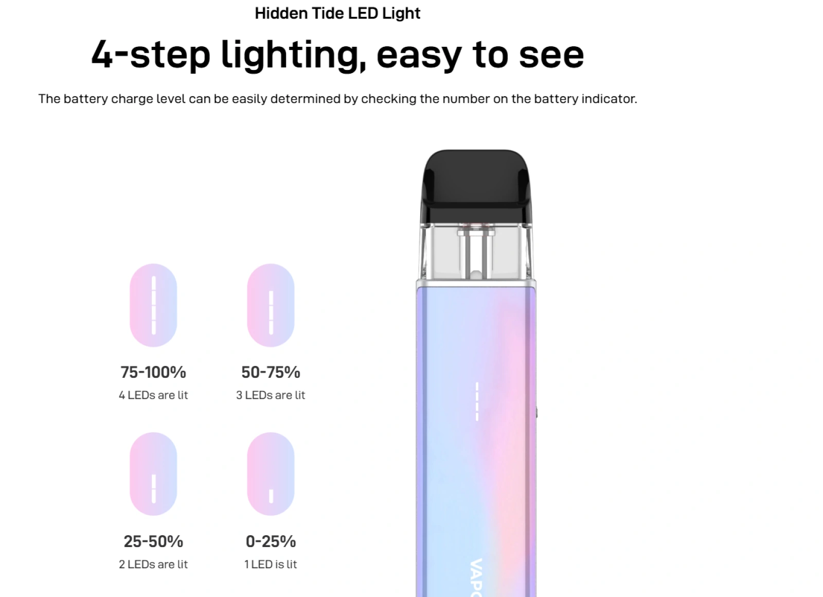The device is compatible with the full XROS pod range, allowing you to choose your preferred resistance and vaping style.