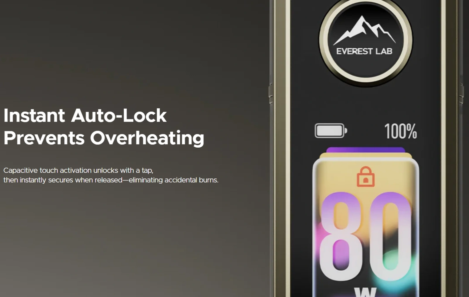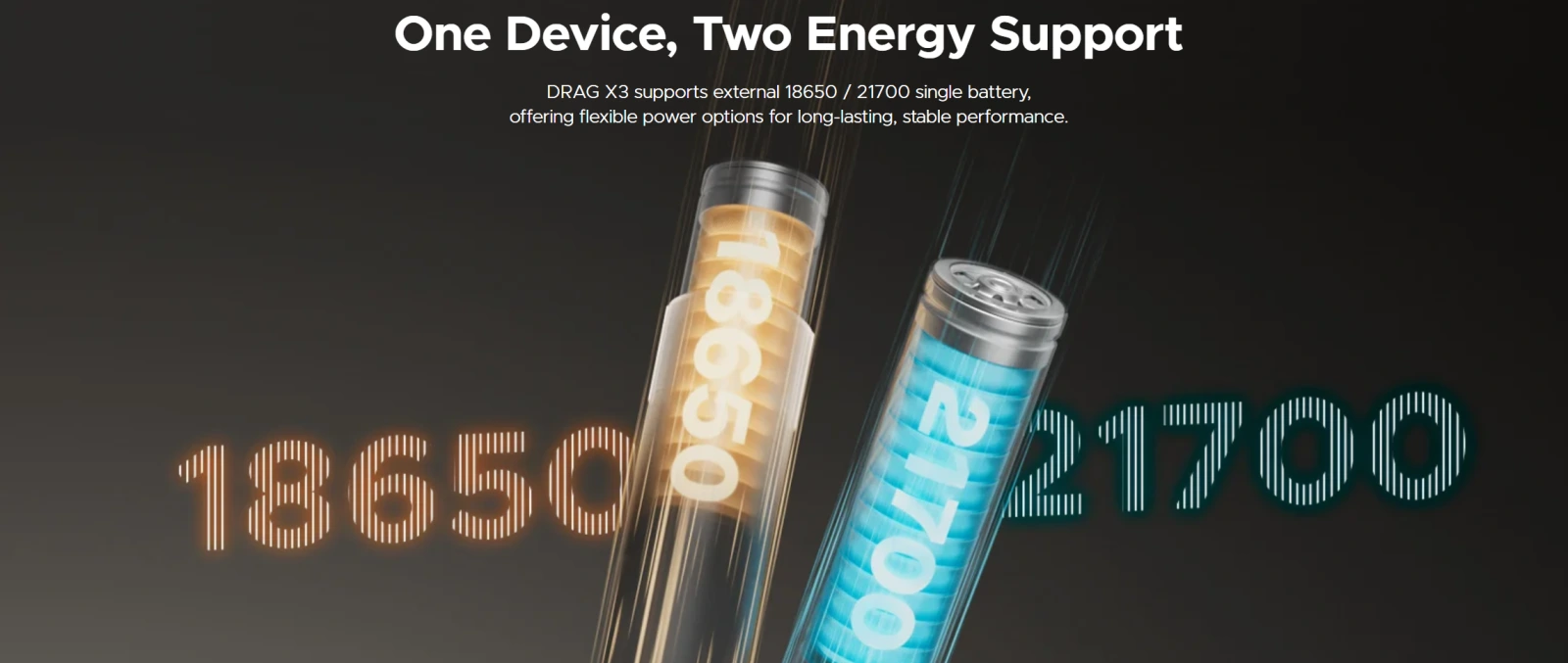 The device is powered by a single 18650 battery (sold separately), offering a balance between portability and performance. It is compact enough for daily use but still powerful enough for advanced vaping.